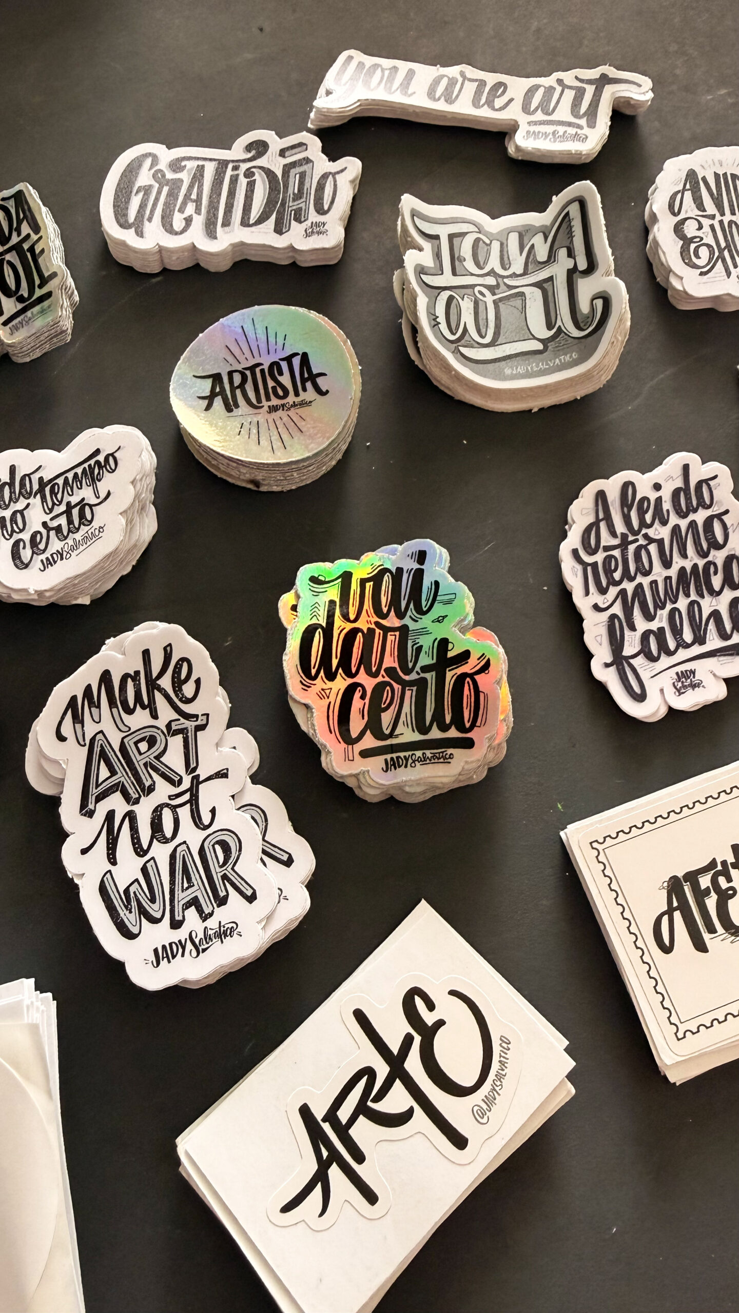 ⚠️ Enviar na página de pagamento, uma nota com as artes escolhidas, citando número do adesivo ou a frase. ⚠️