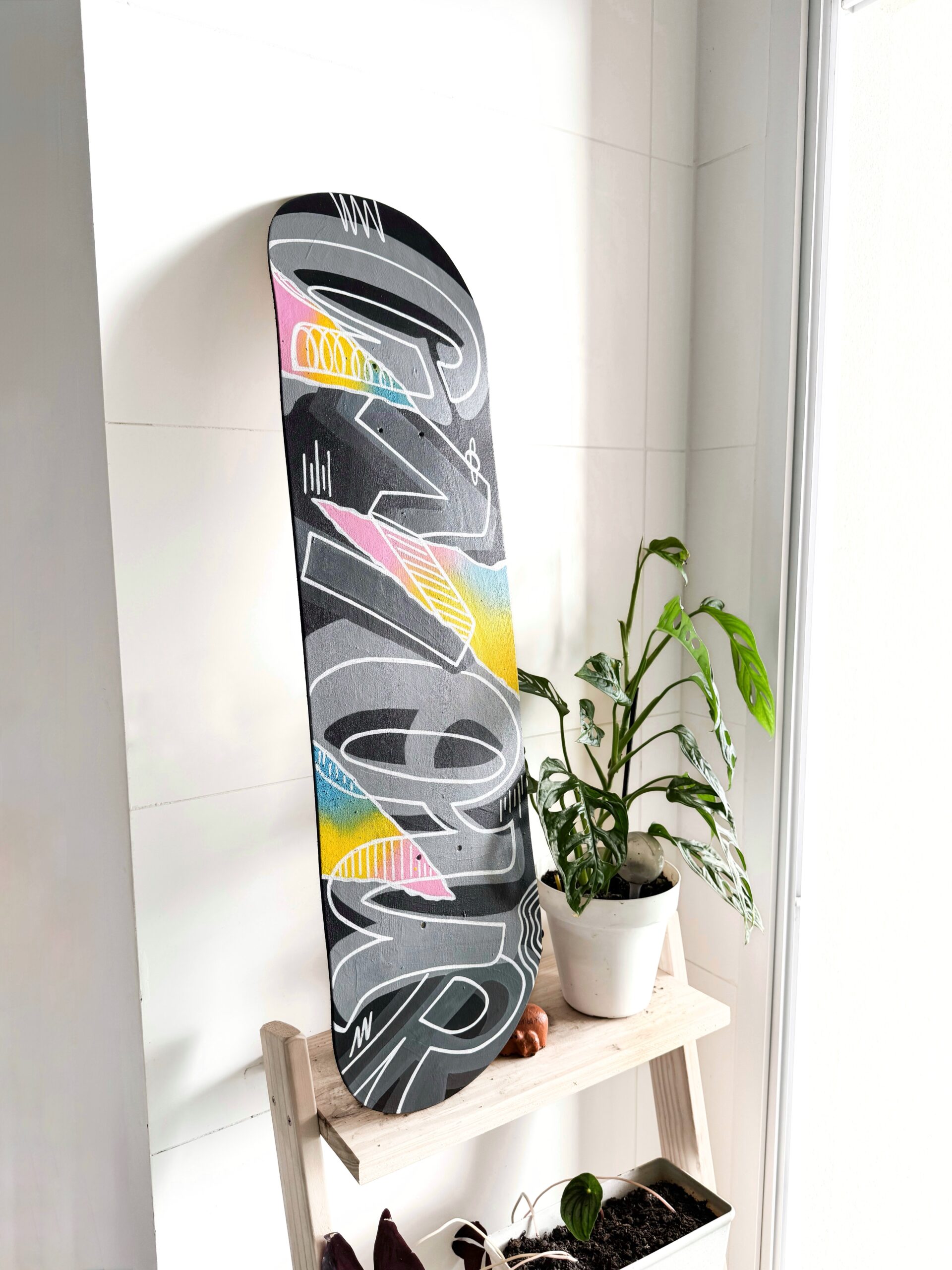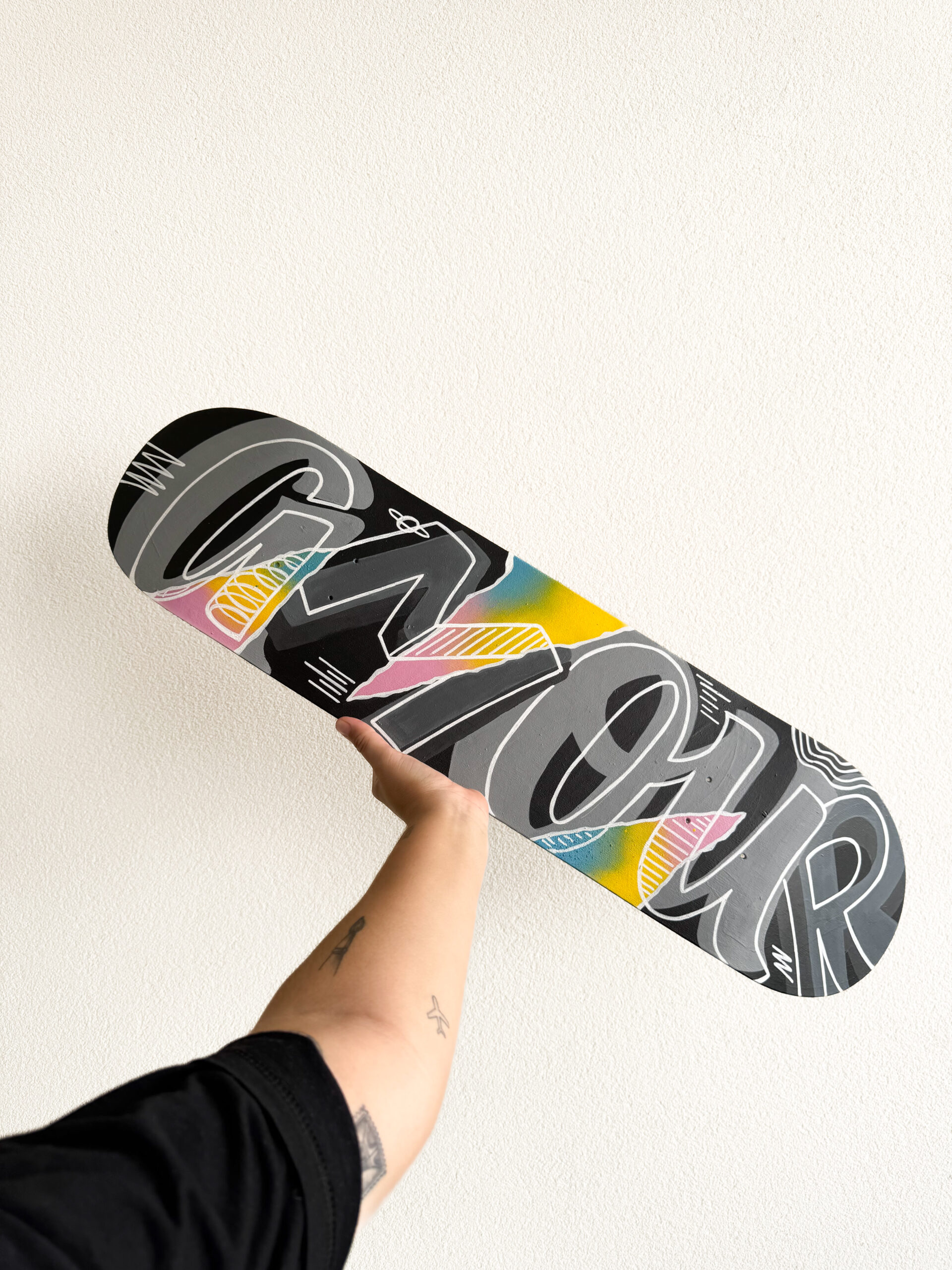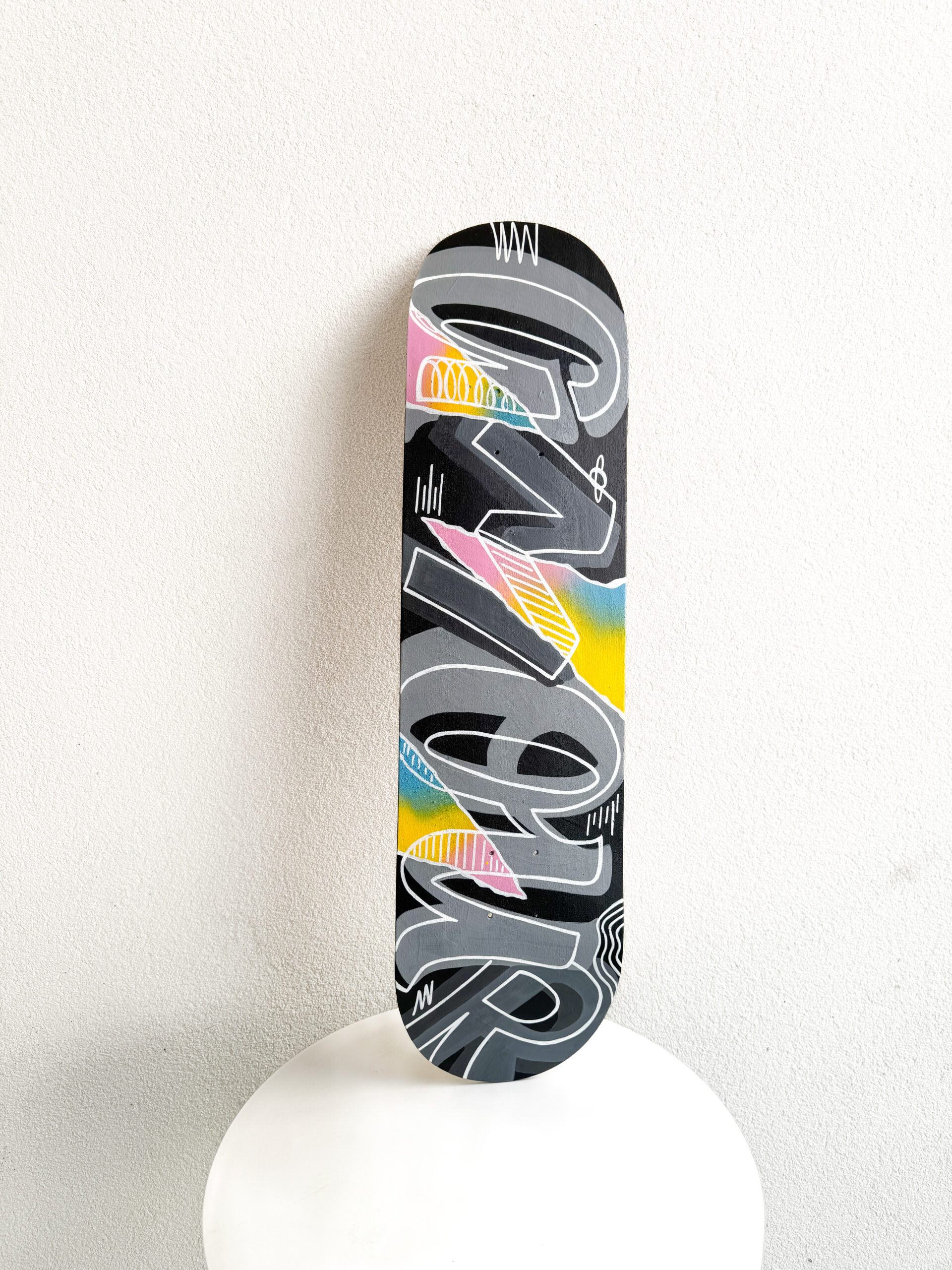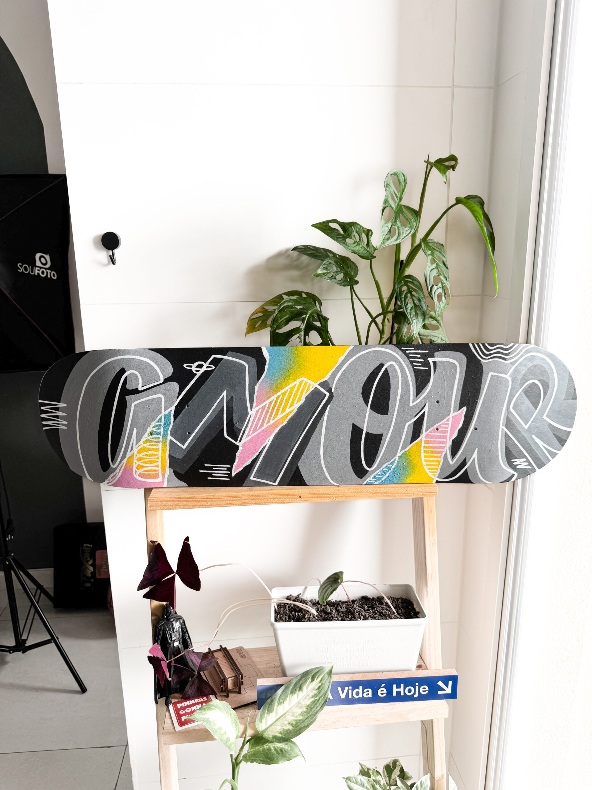 Shape pintado à mão, com a palavra AMOUR, para decoração.